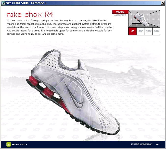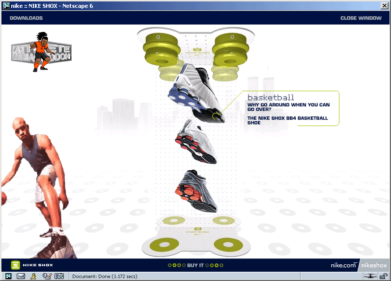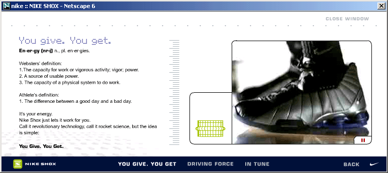 Working alongside W+K Portland for the digital launch of Nike Shox in North America, I helped conceive and create this Cannes (Cyber) Lion winning website for Nike Shox. (Concepts, copy, and key contributions to art direction, interface design, information architecture, and usability.)